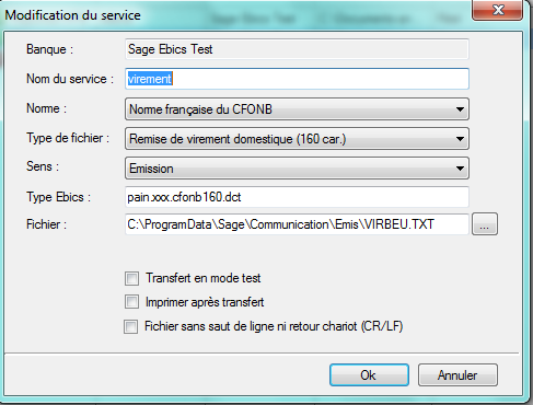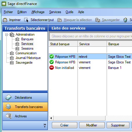 - Accédez au menu : Services>Transferts bancaires >Administration>Services