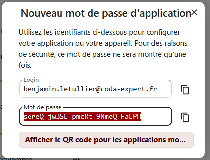 Nom d'utilisateur : votre adresse email au format prenom.nom@coda-expert.fr