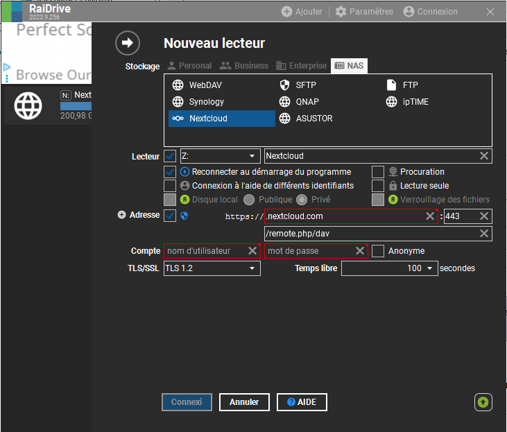 Installation de la liaison RaiDrive ↔ Nextcloud